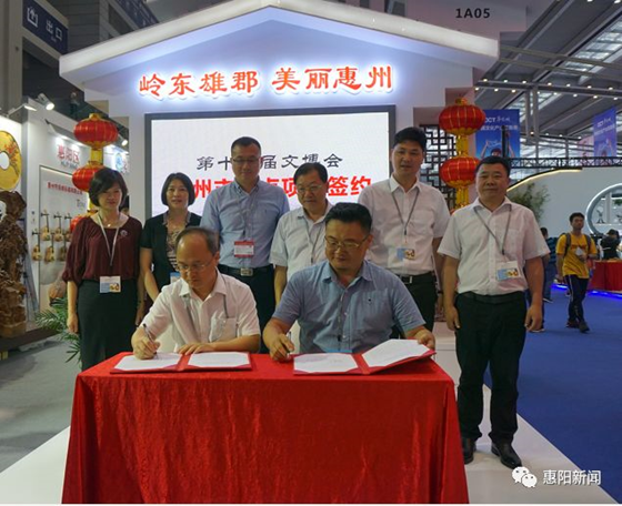 惠州于本届文博会开幕当日举办招商推介活动,借助文博会这个创业平台,宣传、推介文化产业、文化产品、文化项目,招揽天下客商。全市约百家涉及文化+互联网、文化+旅游、文化+体育、文化+智造等多领域的企业、100多种文旅体产品进场展销或项目推介。其中,现场签约项目4个,签约金额高达248.5亿元。