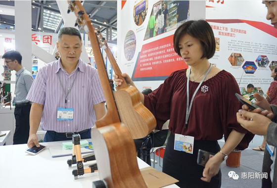 据了解,我区今年受邀参展的有四家企业,包括维墩藤器厂的藤制品、惠州恒昇垅实业有限公司的荔枝干、荔枝红茶、明前荔枝蜜以及荔枝酒,惠州市汤姆乐器有限公司生产的尤克里里和拇指琴,惠阳区淡水信宇凉帽厂生产的客家凉帽。