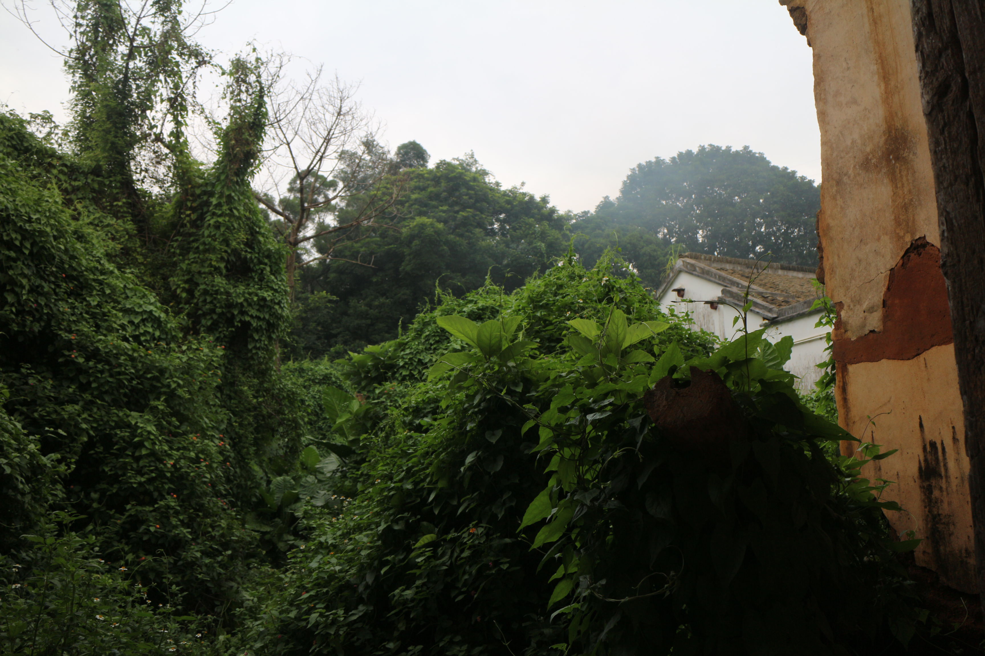 围屋早已不住人,两侧的横屋已经坍塌,那丛生的杂树已经把横屋全覆盖,与围屋背后的古树连成一体。不过,保留下来的角楼,依然能够显示出过去的辉煌。正如柏劳坑叶氏围屋的族人希望的那样:龙脉依旧,灵气长存。