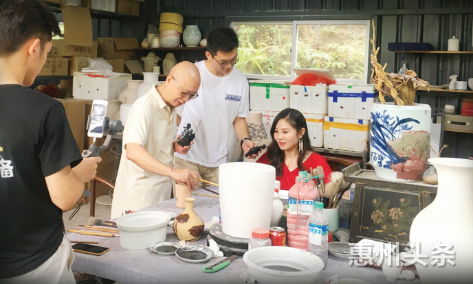 这里是大门,往里走是上坡,感觉像幽居着一位高人。路牌是用陶瓷做的,沿路有很多雕塑品……”镜头摇向一栋徽派建筑,在手机屏幕上,人们看到了琳琅满目的陶瓷品,主播、工作人员适时介绍讲解,让不少人“近距离”领略了惠州人身边的“景德镇”——东平窑陶瓷文化园的风采。