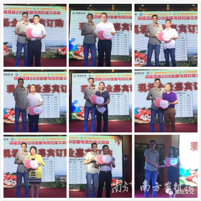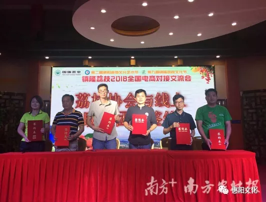 在本次对接会上,洪扬实业公司、中诺智能公司、陈江商会等24家企业现场开展荔枝订购,半小时即订购了价值200万元的荔枝,共24000箱,平均价格为每公斤32元以上。此外,惠州青农会等6家线上助力团队现场与镇隆荔枝协会签约,顺丰、跨越、明达辉、德邦物流等多家物流公司与镇隆本地荔枝合作社代表签约,通过电商对接交流会,有效拓宽镇隆荔枝销售渠道,保障果农增产增收。