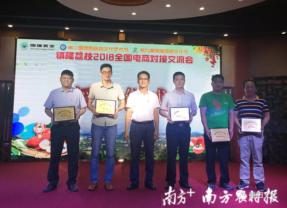 广东省农业厅市场与经济信息处处长杨志平、省农业厅市场与经济信息处副处长何霞、南方农村报社总编辑陈永、惠阳区农业局局长林兴通、团惠阳区委书记陈吉、惠阳区水果办主任余丽华、惠阳区水果办副主任叶瀚、镇隆镇委书记宏振图、镇隆镇镇长胡冠文、国瑞置业惠州公司董事长李维佳,以及各大电商平台、快递物流公司代表、镇隆荔枝种植户等200多人参加对接会。