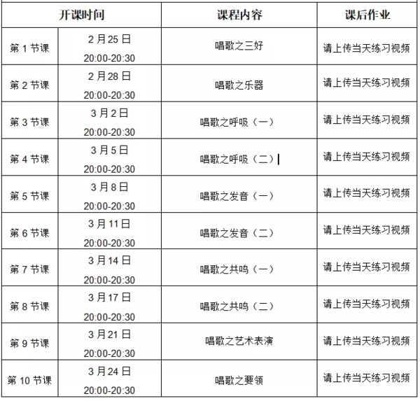4、上课时间:2月25日20:00开课,三天一次课程,共10节课,一个月内学完。