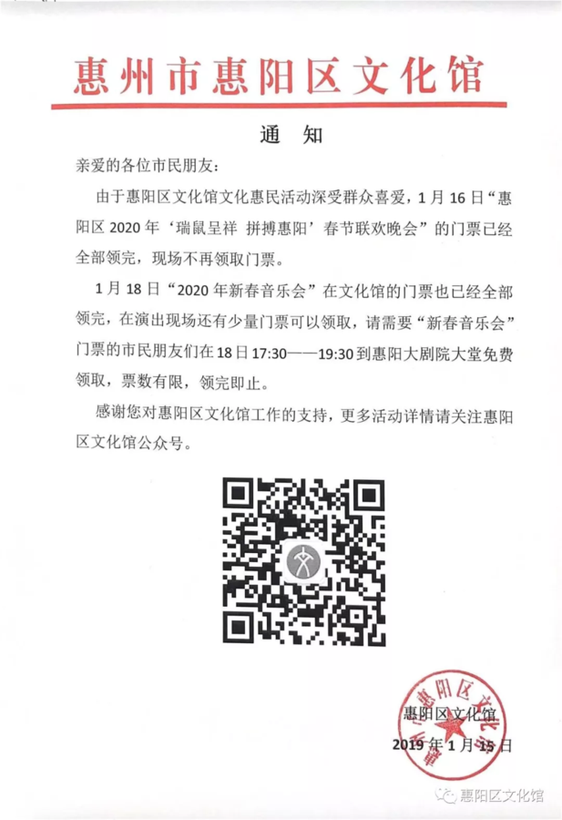 明晚20:00在惠阳大剧院举行惠阳区2020年新春音乐会
