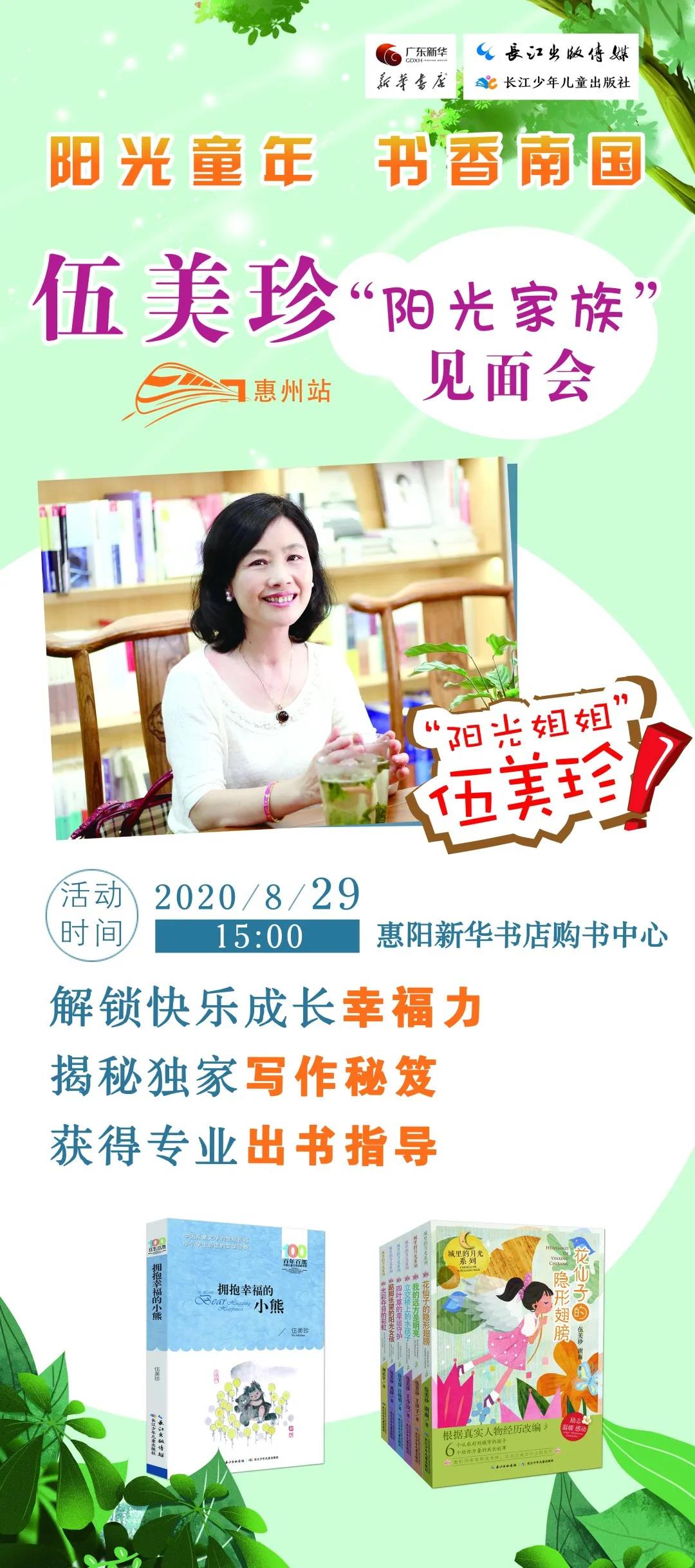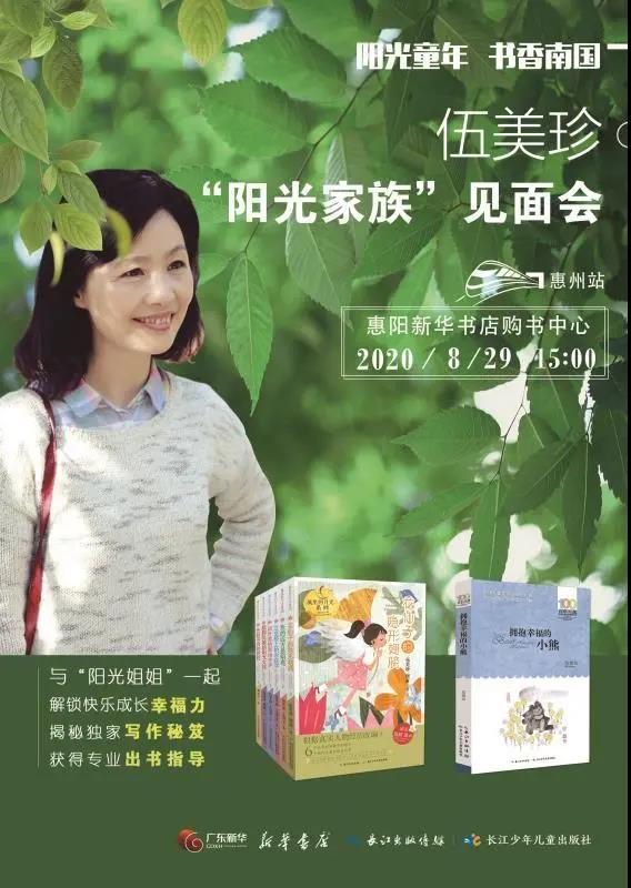 为发挥名家引领作用,书香节将组织开展读者与名家见面会,为市民读者创造对话大咖的机会。著名儿童文学作家伍美珍将来到惠阳新华书店购书中心举办读者见面会,期待读者前来与名家互动交流。